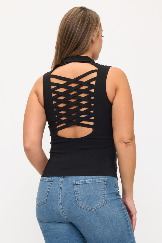 LACE-UP DETAIL CRISS CROSS BACK CUTOUT SLEEVELESS TOP -PLUS
