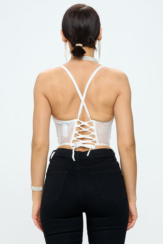 DIAMOND SHAPE CRYSTAL BEADED LACE BRALETTE TOP