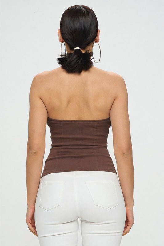 BUCKLE DETAIL ZIPPER FRONT COLLAR HALTER TANK TOP