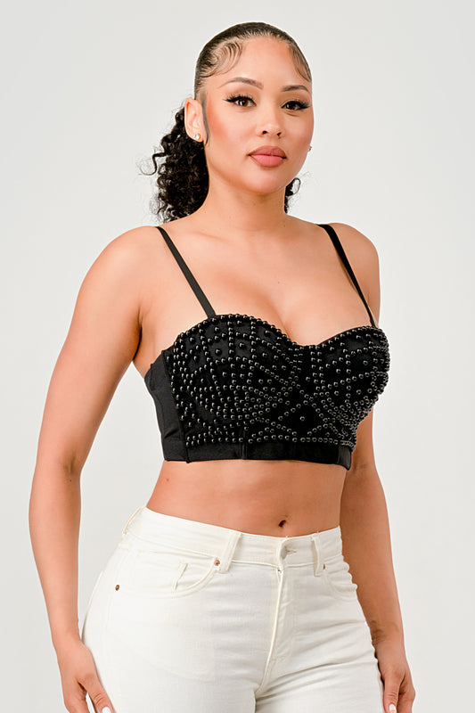 SWEETHEART PEARL BEADED BRALETTE TOP