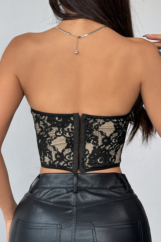 Sexy Lace Corset Top with Choker Neck Cut-Out