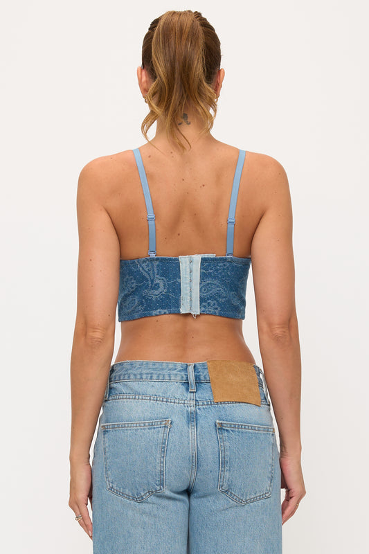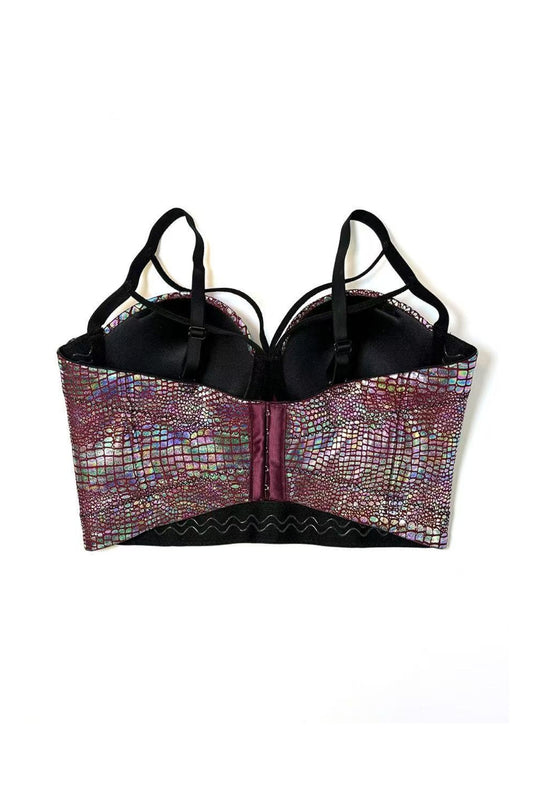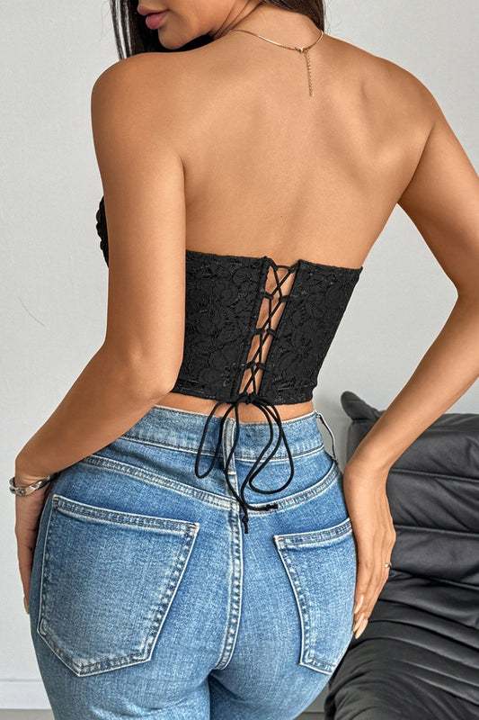 Sexy Floral Corset Crop Top with Lace-Up Back