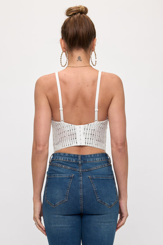 RAINBOW MULTI STRIPE SEQUIN CROPPED BUSTIER TOP