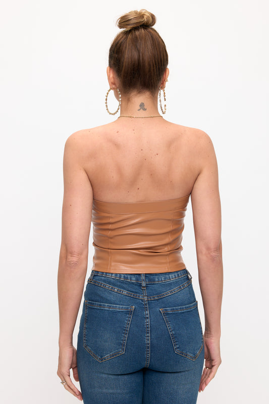 Faux Leather Cowl Neck Corset Top_DSJ3285