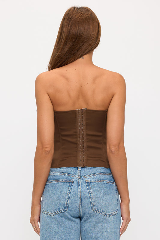 MESH STRAPLESS OPEN BACK CORSET CROP TOP