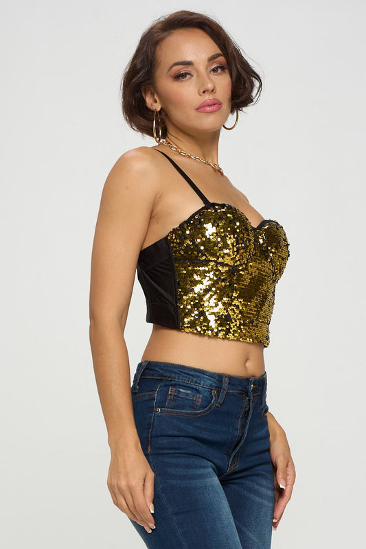 CHAIN STRAP SEQUIN DENIM BUSTIER TOP_D7178