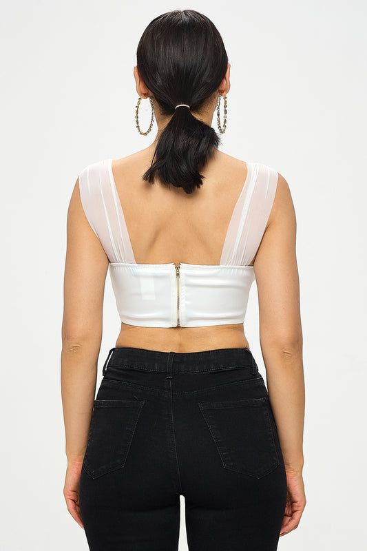 PLUNGING NECKLINE SATIN CORSET CROP TOP