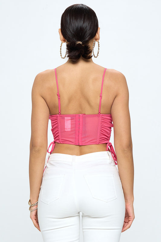 DRAWSTRING SIDE RUCHED CORSET BODICE MESH BUSTIER TOP