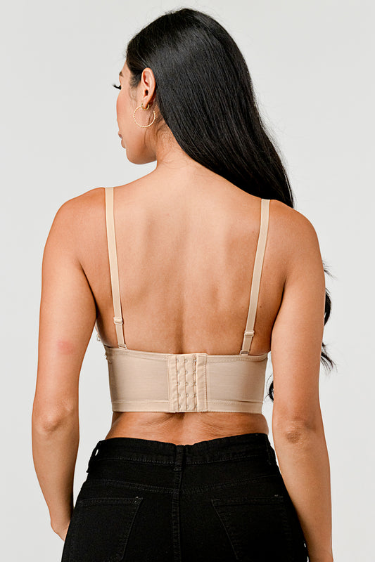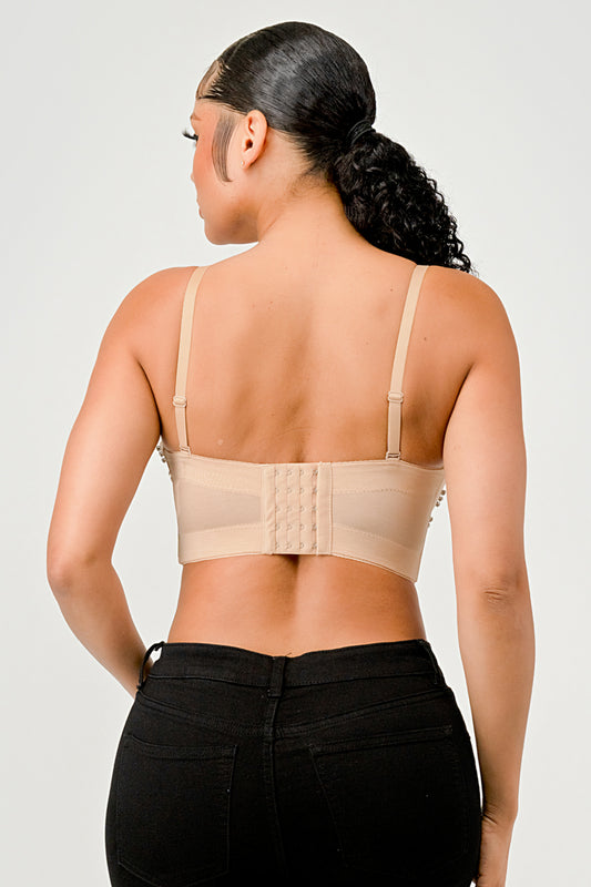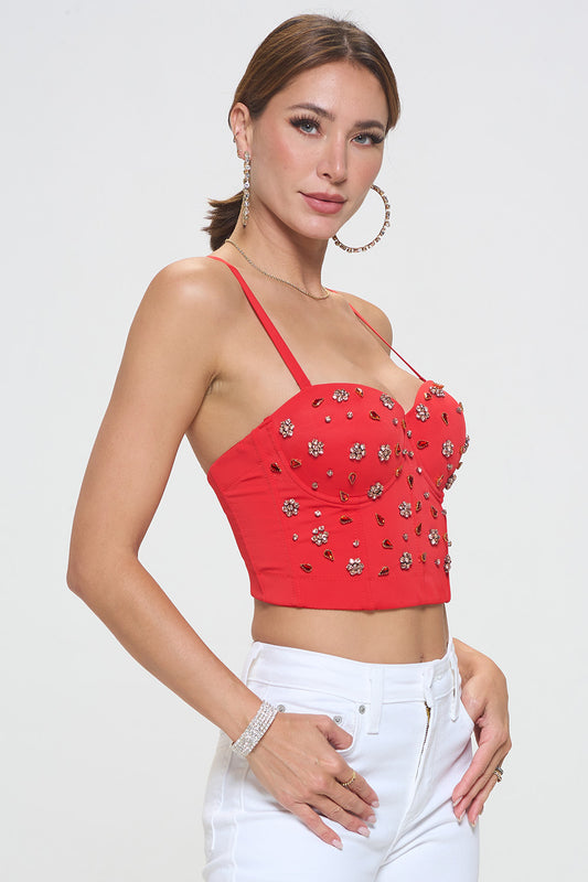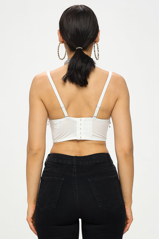 RHINESTONE BEAD EMBELLISHED DETAIL BUSTIER CROP TOP
