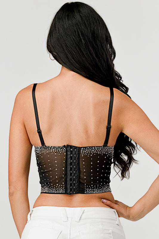 RHINESTONE STUDDED EMBELLISHMENT BUSTIER CROP TOP