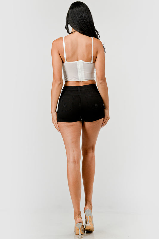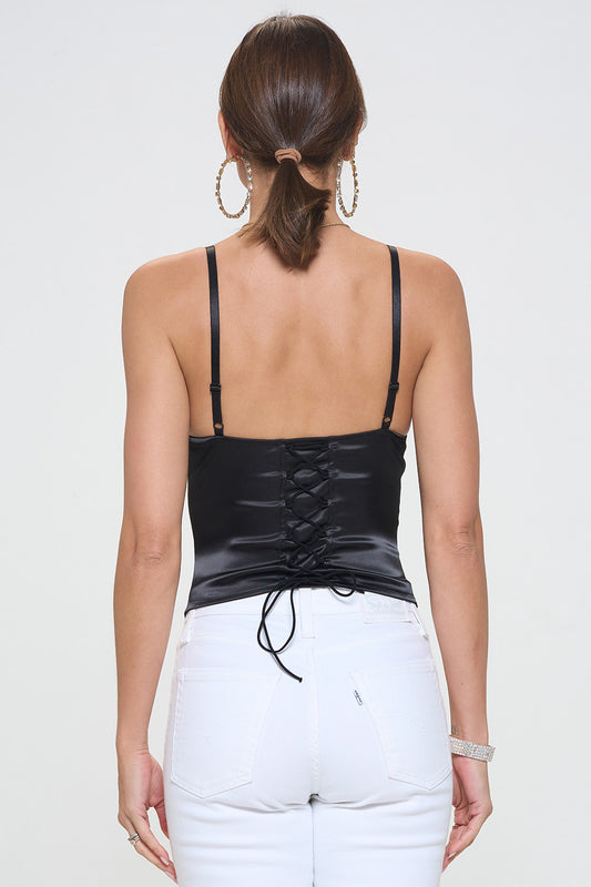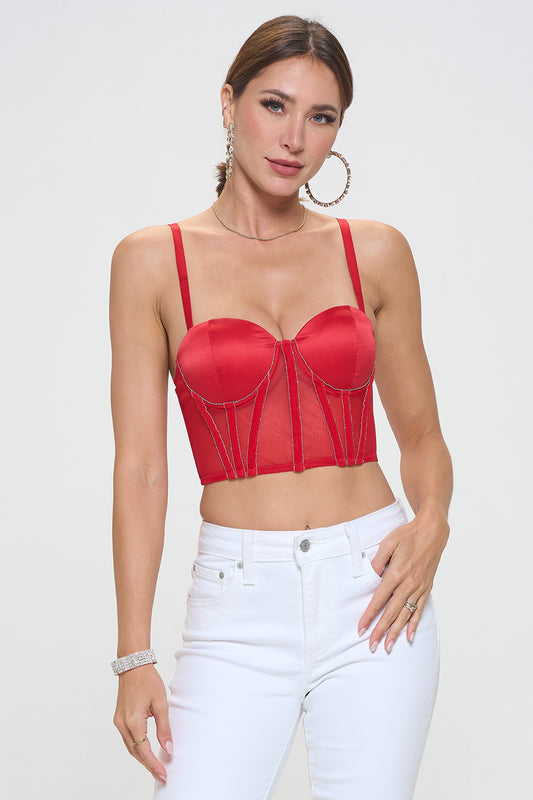 RHINESTONE EMBELLISHED SATIN MESH CORSET CROP TOP_D7264
