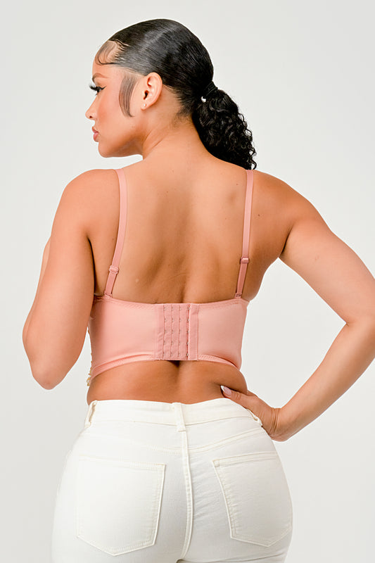 SATIN ROSE SWEETHEART BUSTIER CROP TOP