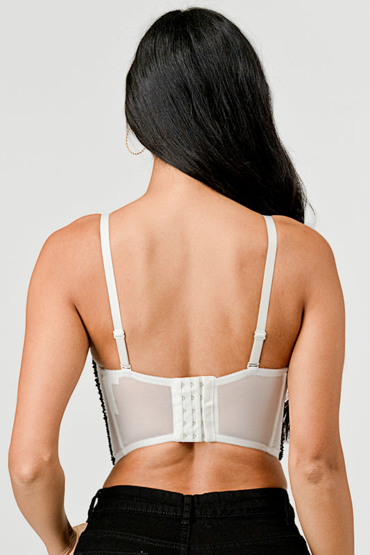 RHINESTONE BEADED LACE TRIM BUSTIER CROP TOP
