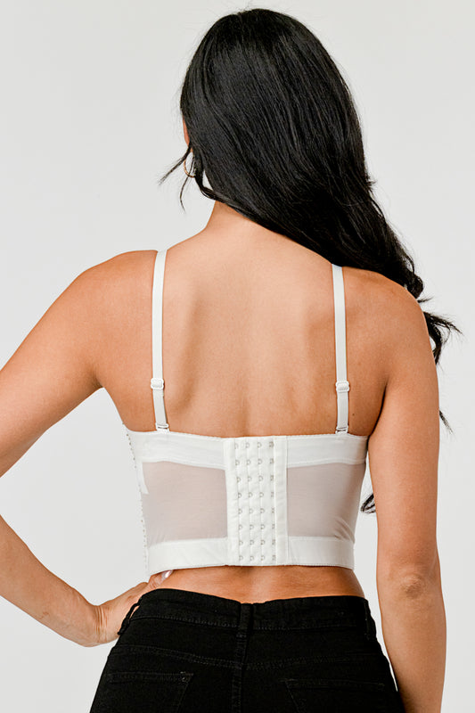 PEARL BEAD EMBELLISHED BUSTIER Corset Sexy CROP TOP