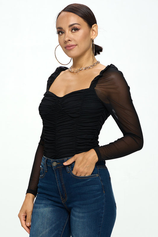 RUCHED DETAILS LONG SLEEVE BODYSUIT