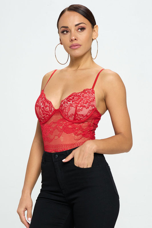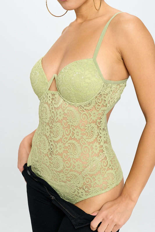 FLORAL PATTERN LACE PADDED BODYSUIT