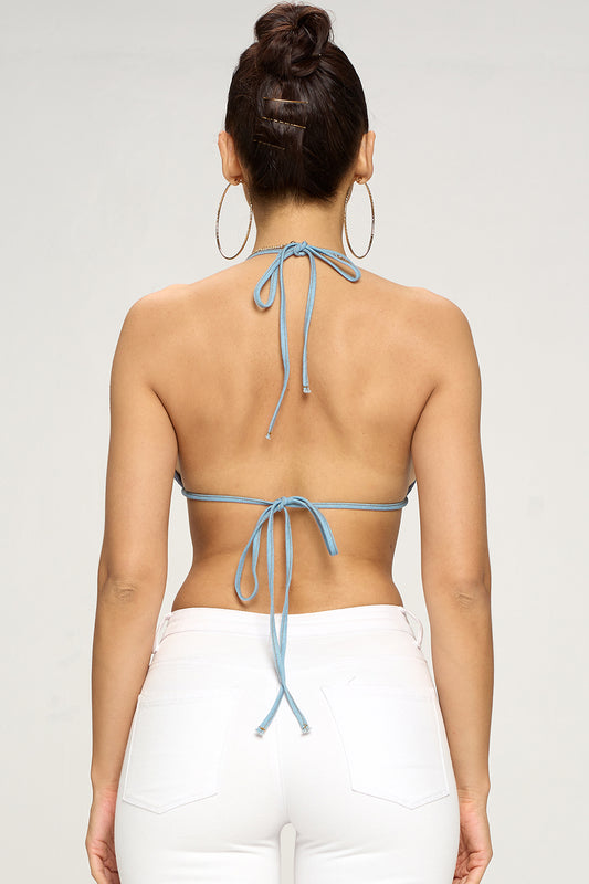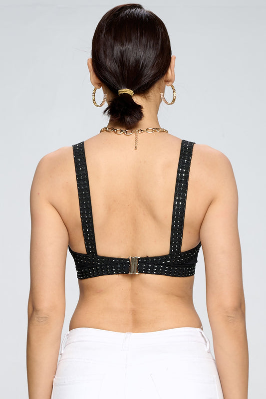 HOTFIX STONE BEADED MESH STRAPPY LINGERIE SET