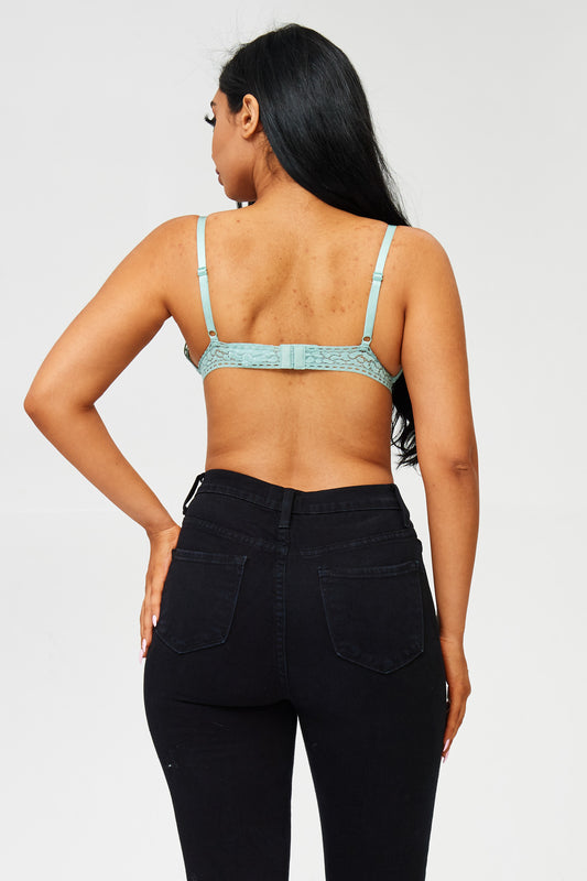 FLORAL EMBROIDERED MESH STRAPPY LINGERIE SET