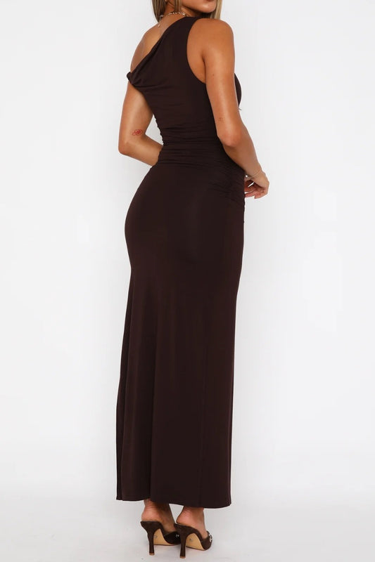 One-Shoulder Ruched Bodycon Long Dress