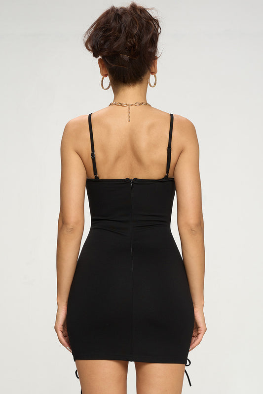 METAL O-RING AT SIDE WITH SHIRRING MINI DRESS