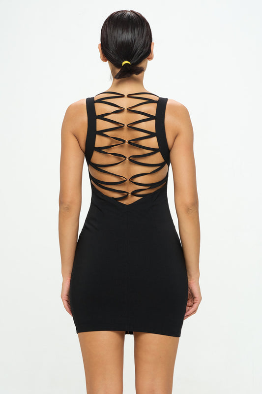 CRISS CROSS DETAIL ZIP UP BODYCON DRESS