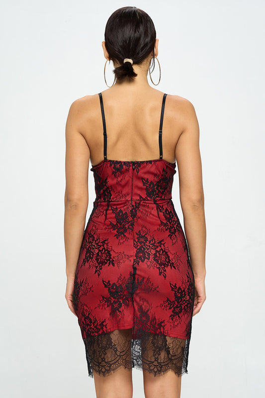 OVERLAPPING HALF SLEEVE LACE DRESS