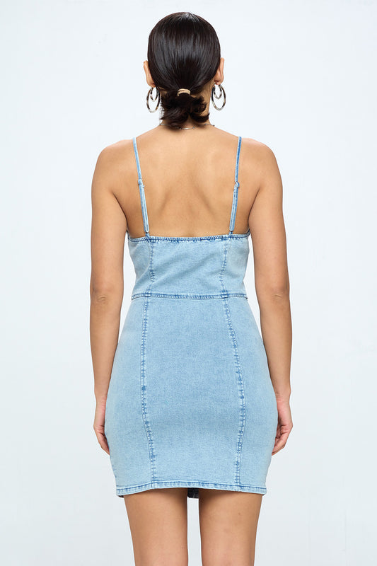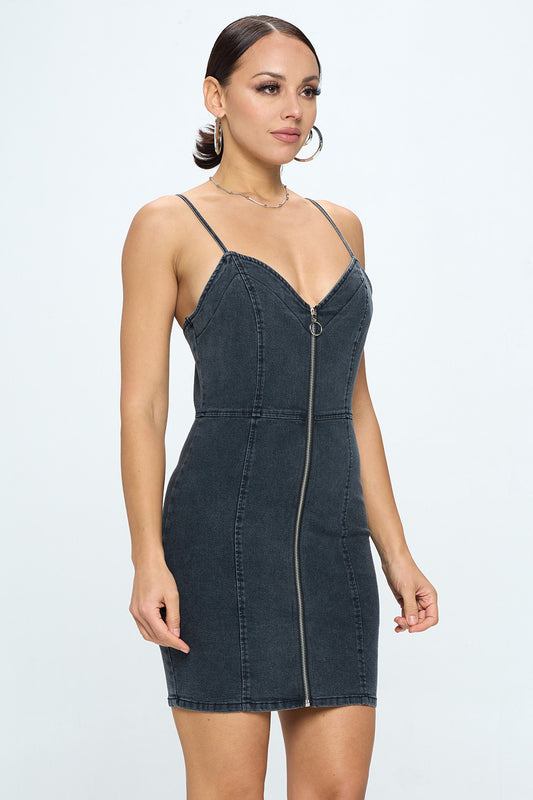 ZIPPER FRONT CLOSURE DENIM BODYCON DRESS