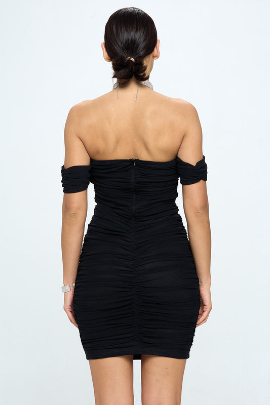 COWL FRONT WITH JEWEL O-RING BK MINI DRESS