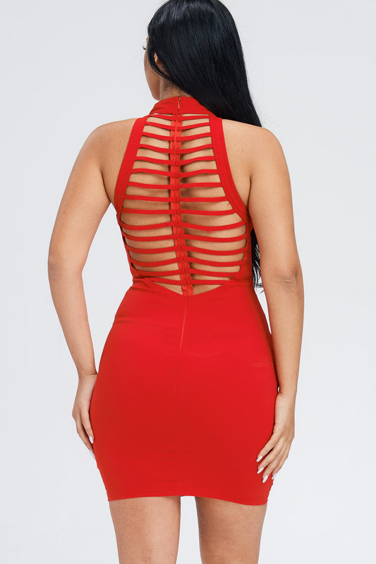 SIDE-CUT BACK PATTERN ZIP-UP DRESS