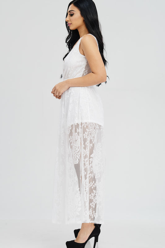 LACE MIDI DRESS SHORT SLEEVE SEE THROUGH DRESS