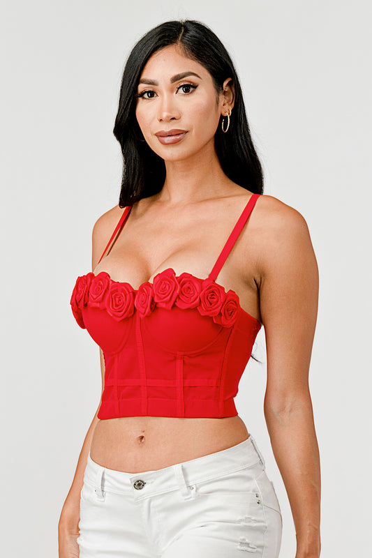SATIN ROSE SWEETHEART BUSTIER CROP TOP