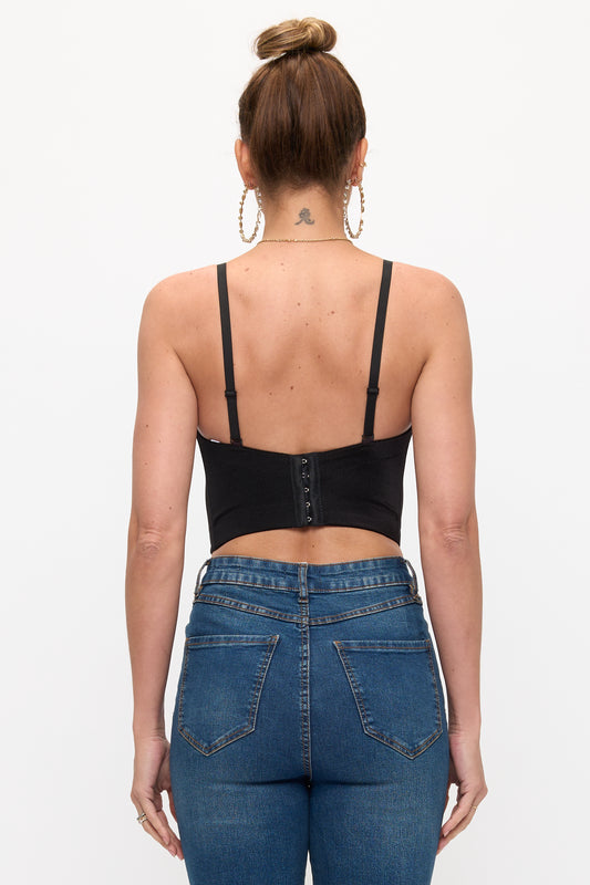 RHINESTONE EMBELLISHED BOW TRIMS BUSTIER CROP TOP