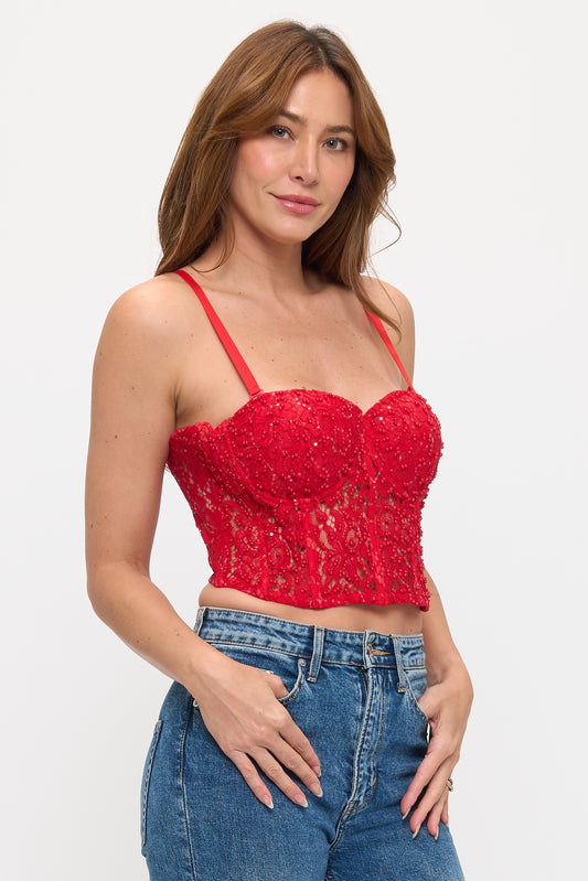 SEQUIN BEADING SEAM DETAIL EMBELLISHED BUSTIER CROP TOP