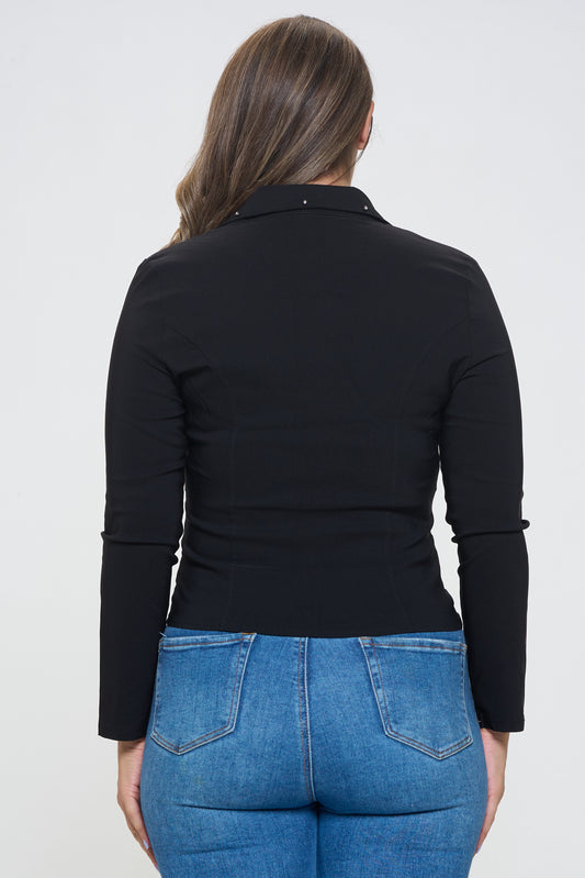 UNBALANCE COLLARED ZIPPER TOP PLUS