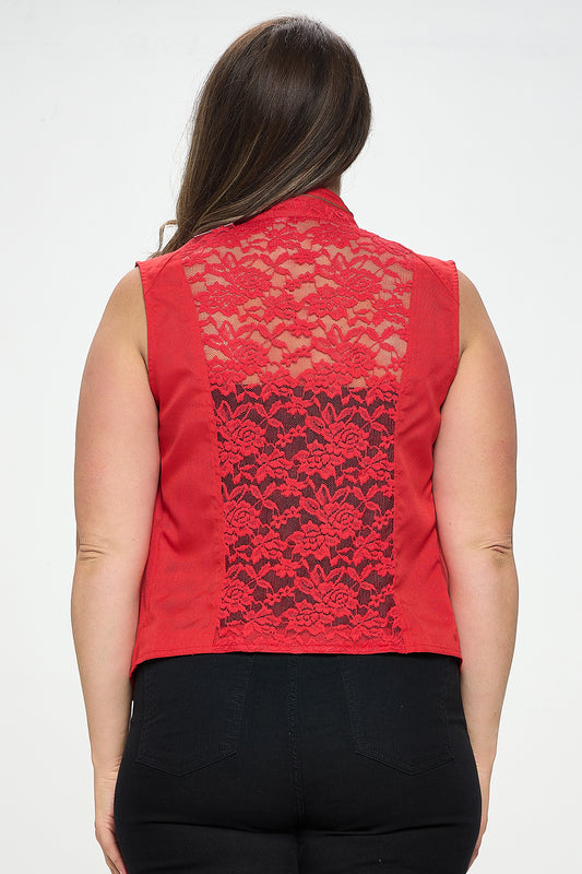 SHOULDER LACE BUTTON VEST PLUS