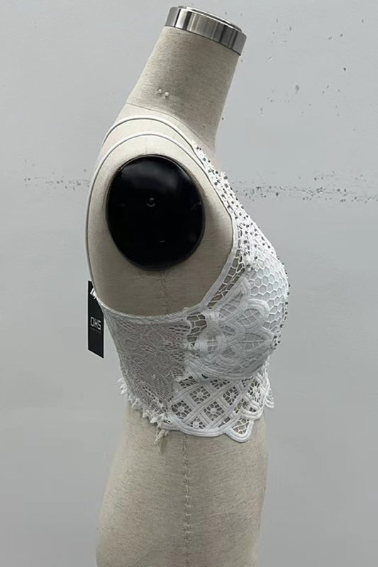 RHINSTONE BEADED CROCHET LACE BRALETTE