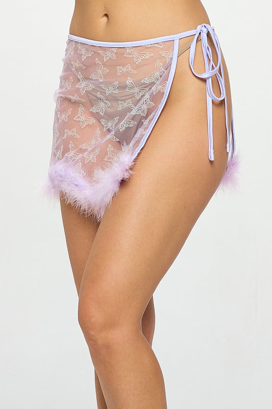 BUTTERFLY GLITTER MESH FEATHER TRIM RAVE MINI SKIRT