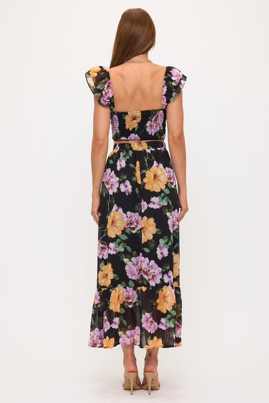 Floral Puff Sleeve Crop Top & Maxi Skirt Set