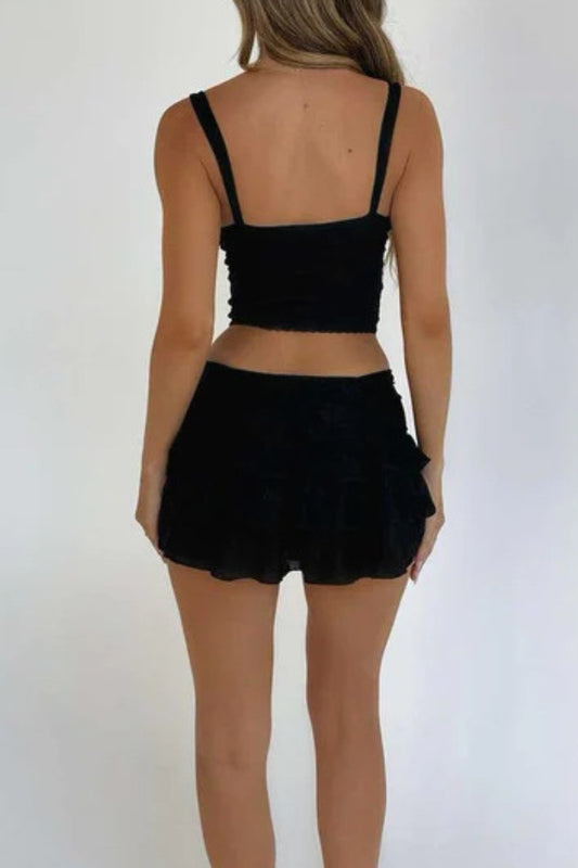 Sexy Lace Cami Top and Layered Ruffle Skirt Set