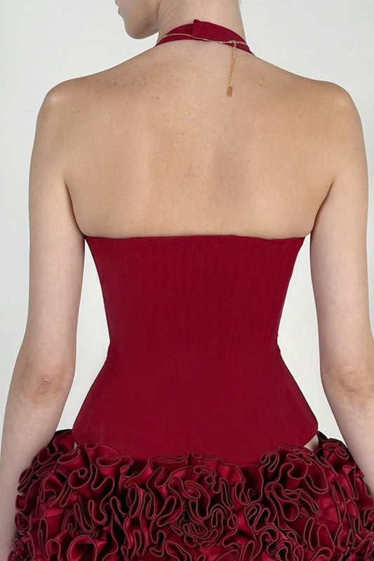 Sleek Halter Zip-Up Corset with Lattice Sides