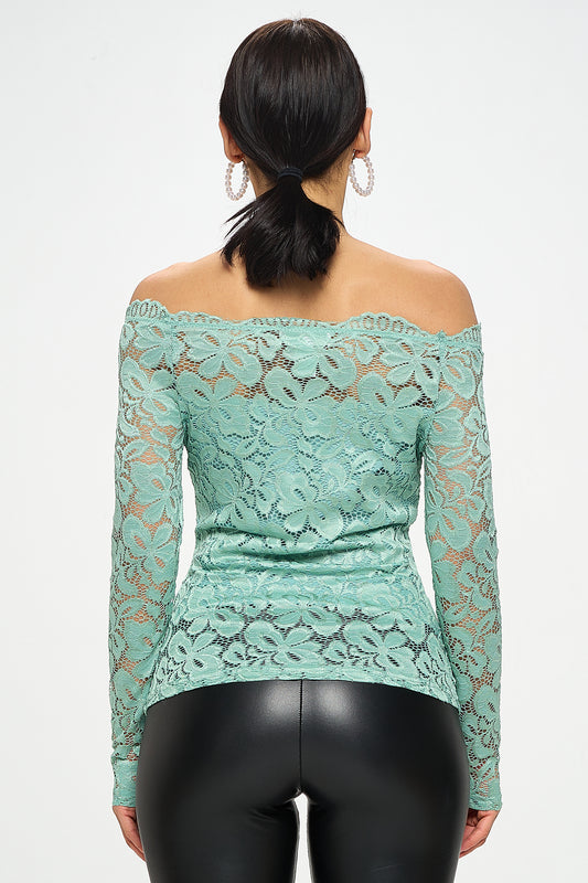OFF SHOULDER LACE LONG SLEEVE TOP
