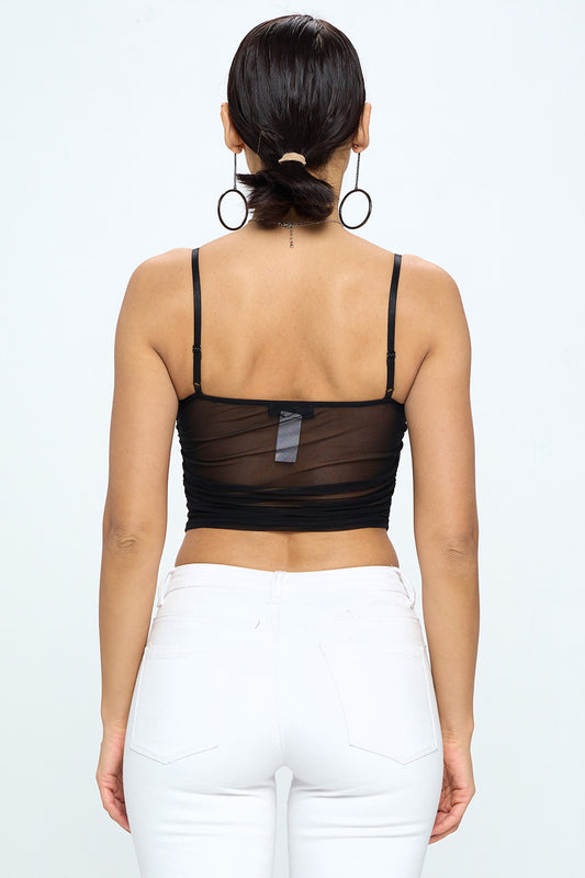 HALTER CRISS CROSS MESH CORSET CROP TOP