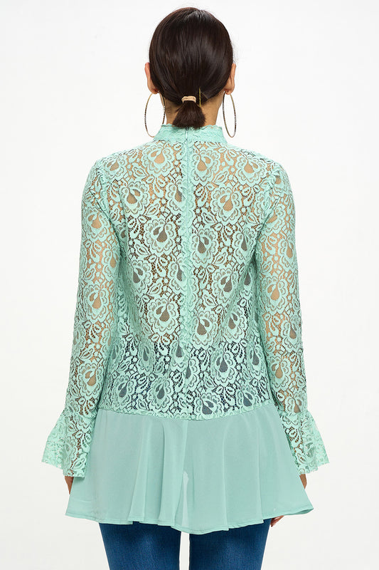 V NECK FLORAL LACE DETAILED LONG SLEEVE TOP