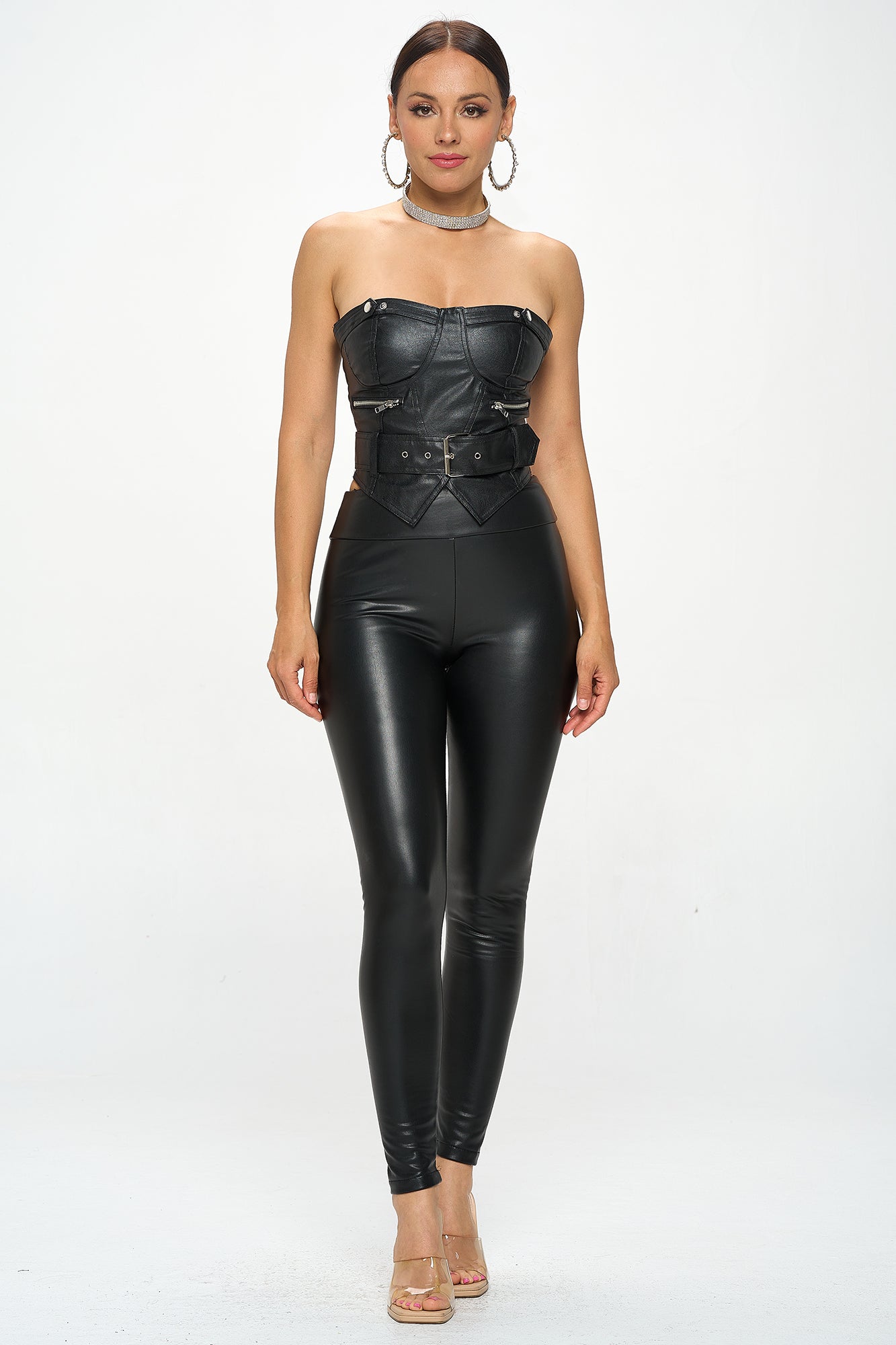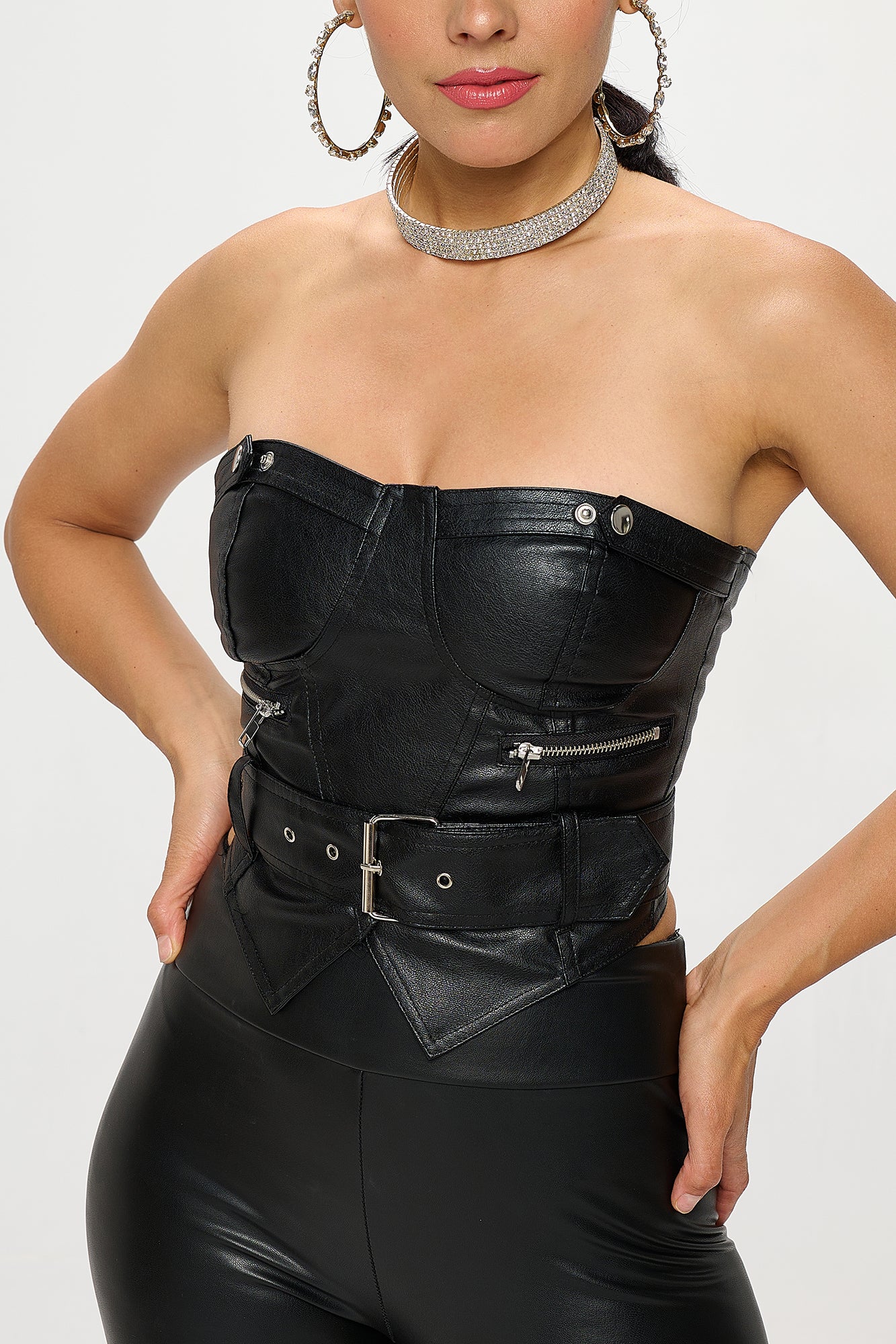 BLACK FAUX LEATHER BUCKLE ACCENT TUBE TOP