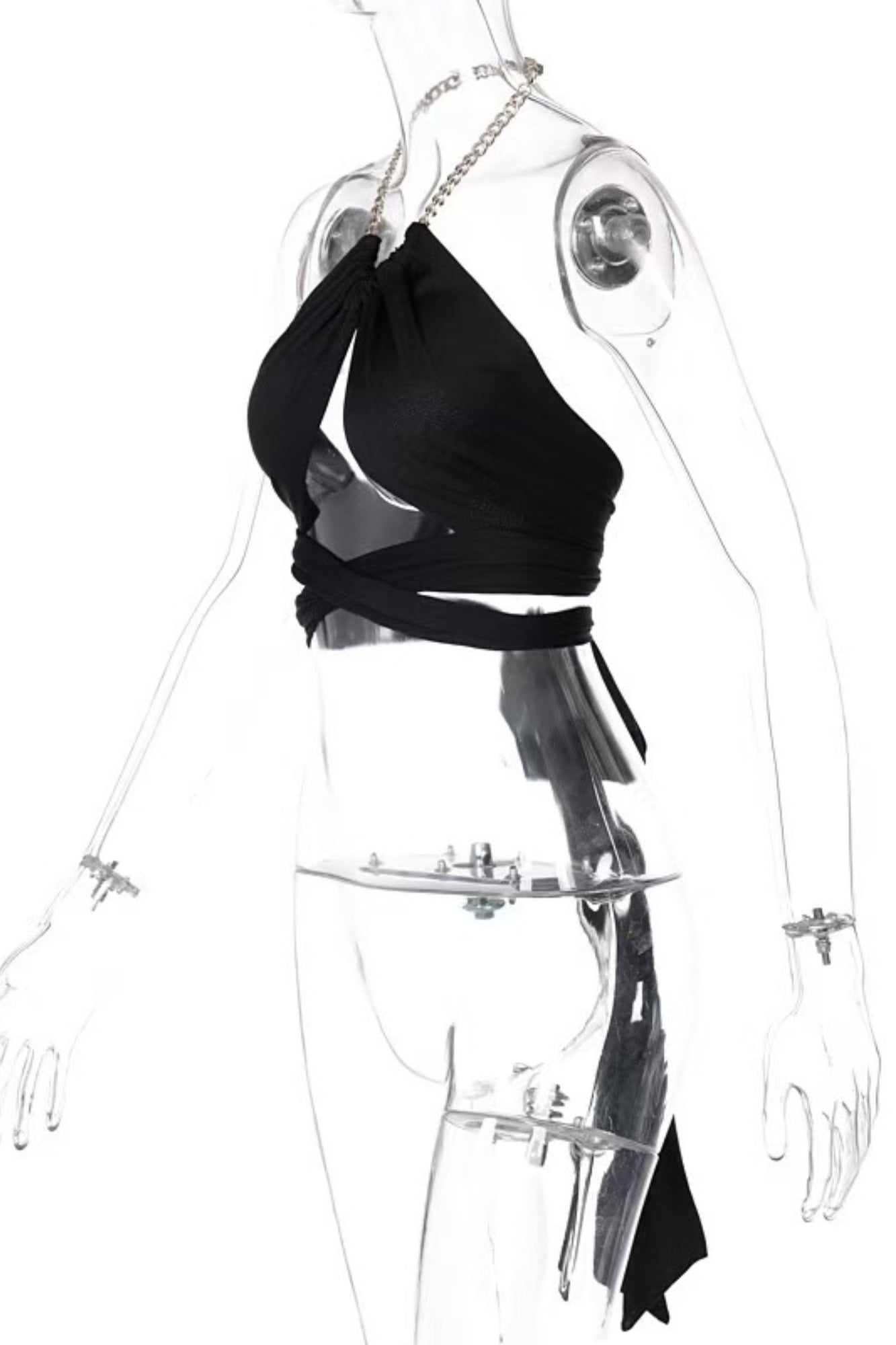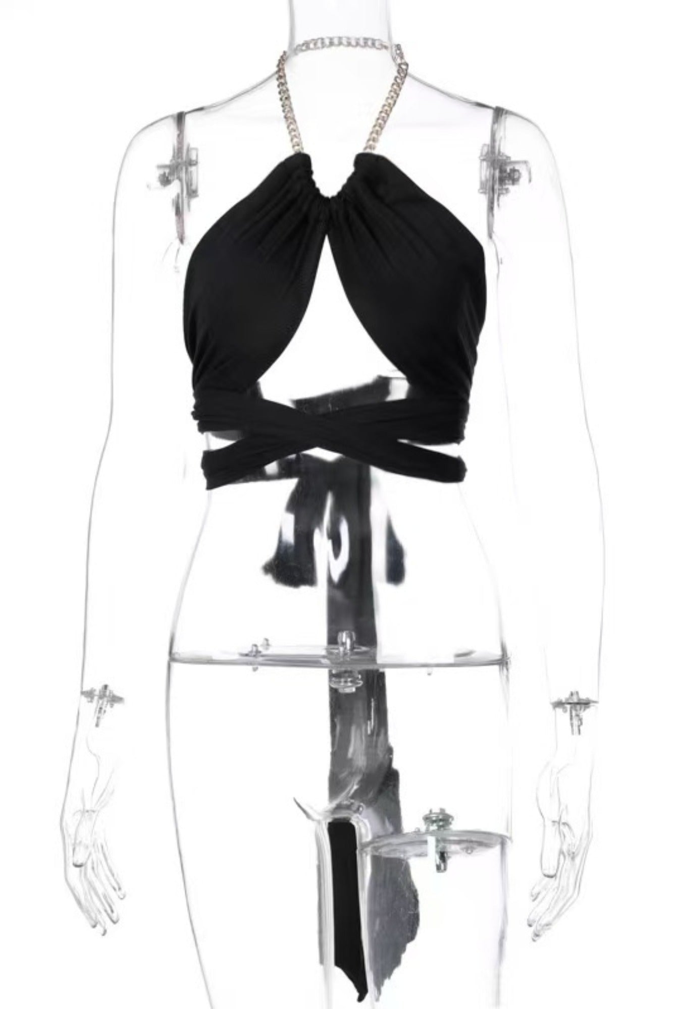 Chain Halter Cutout Crossover Wrapped Sleeveless Crop Top