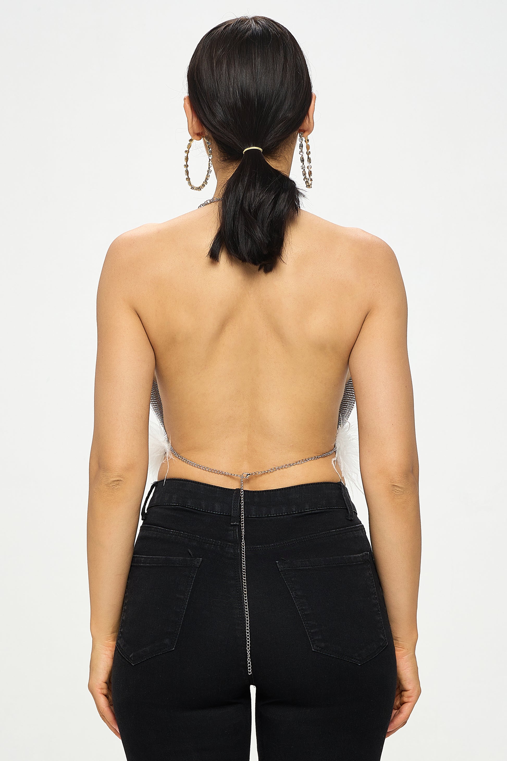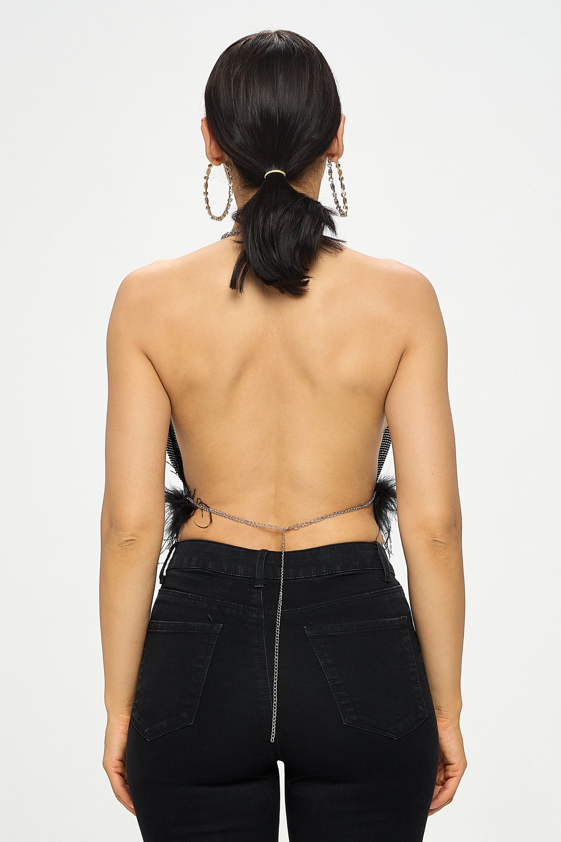 CHAINMAIL FEATHER TRIM HALTER CROP TOP