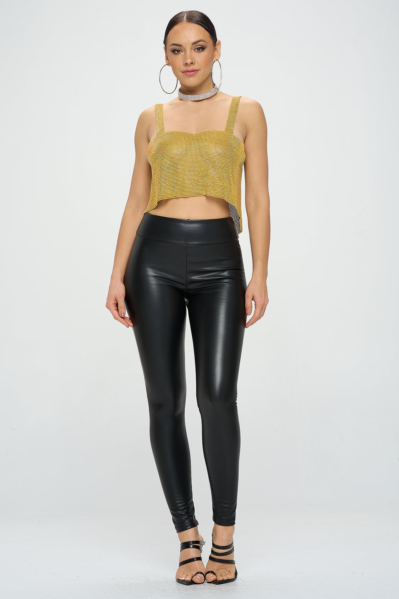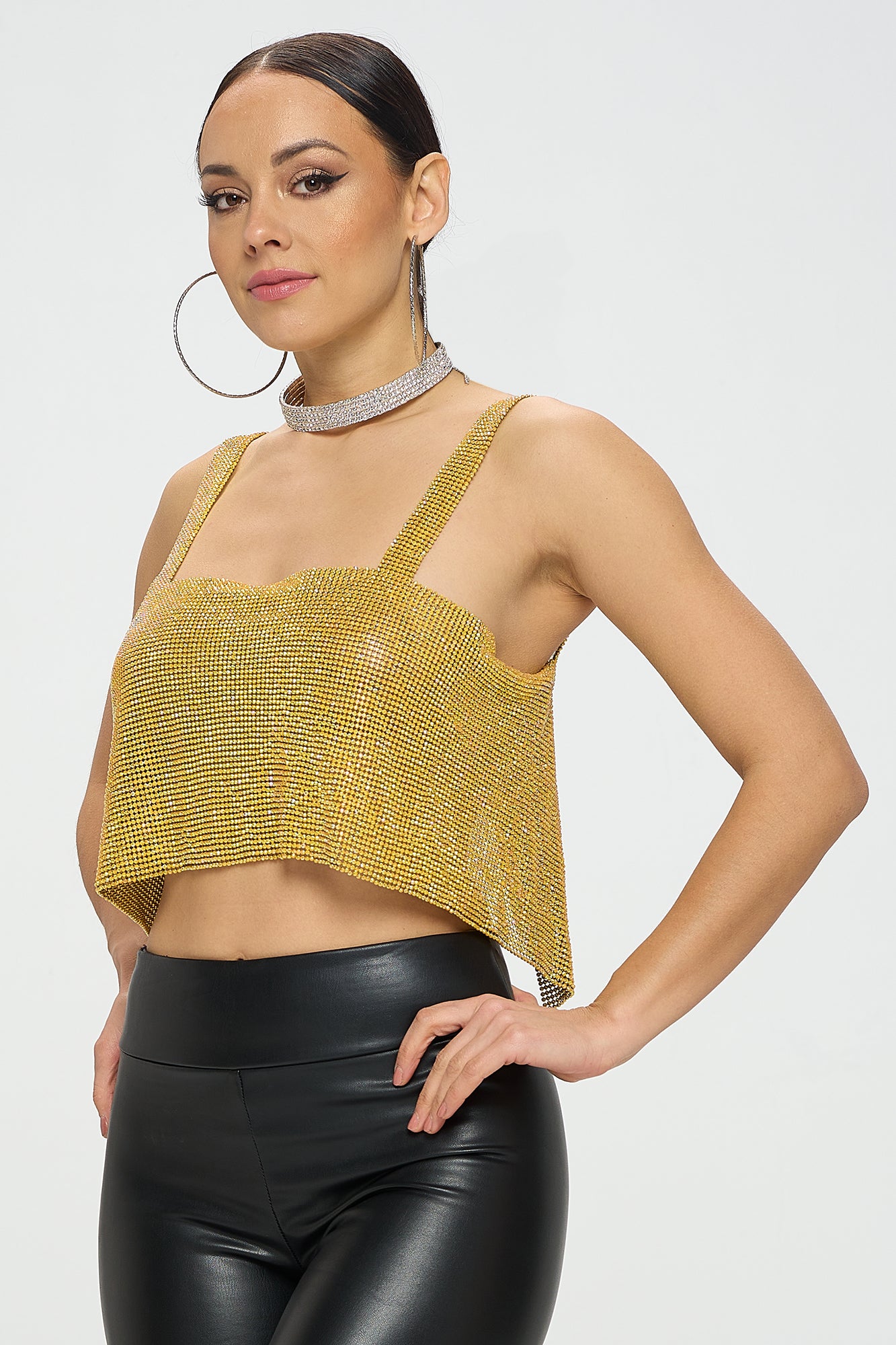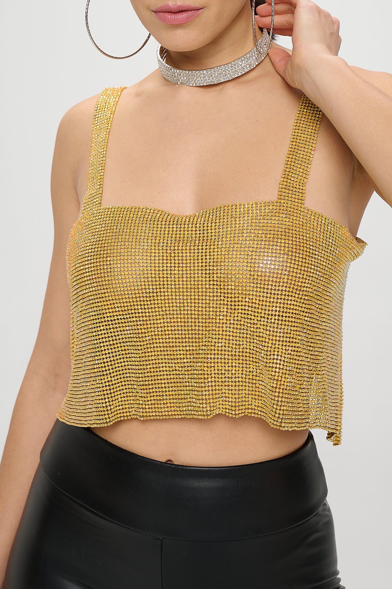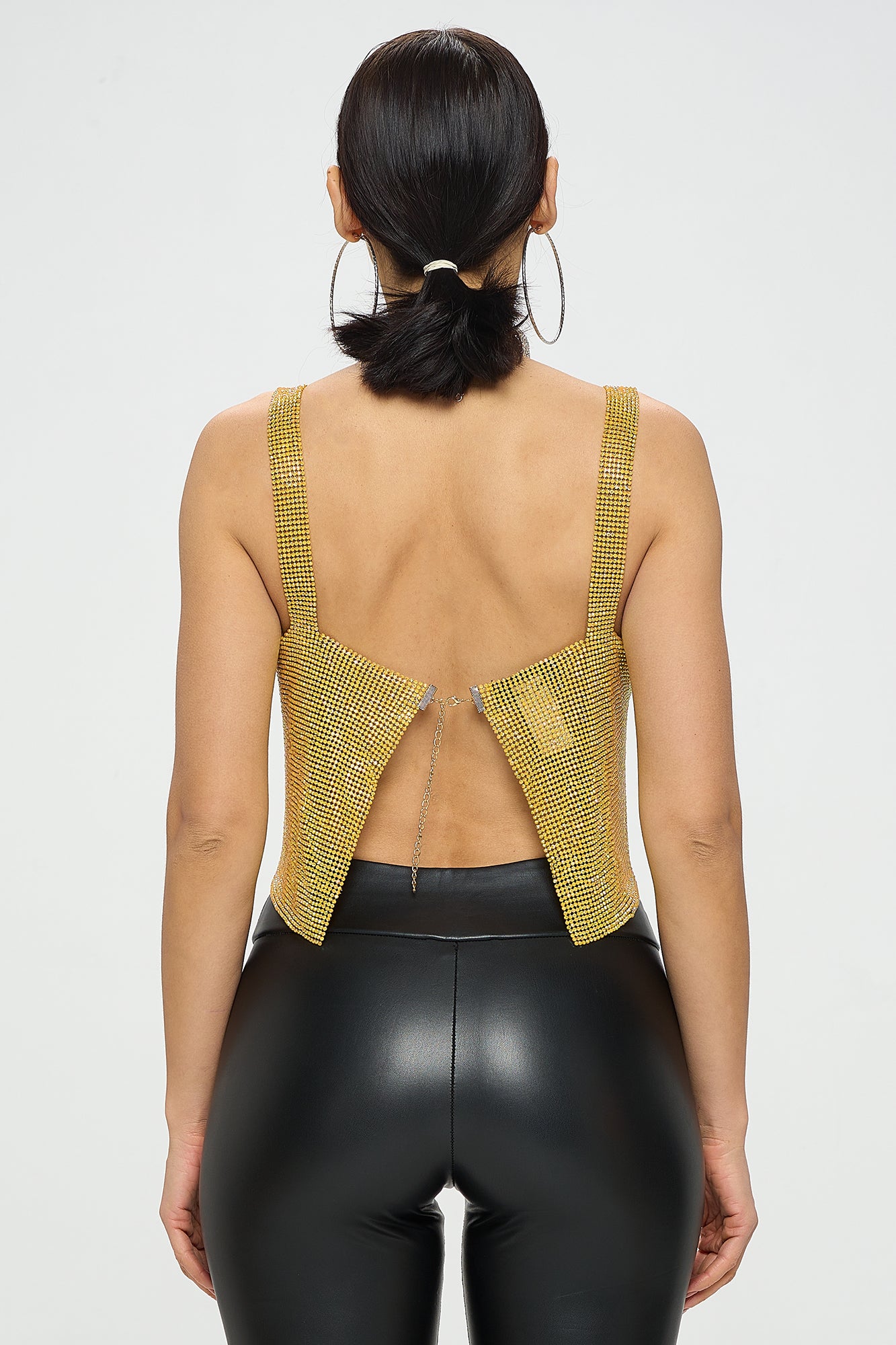 SOLID METALLIC CHAIN DETAIL BACKLESS CROP TOP