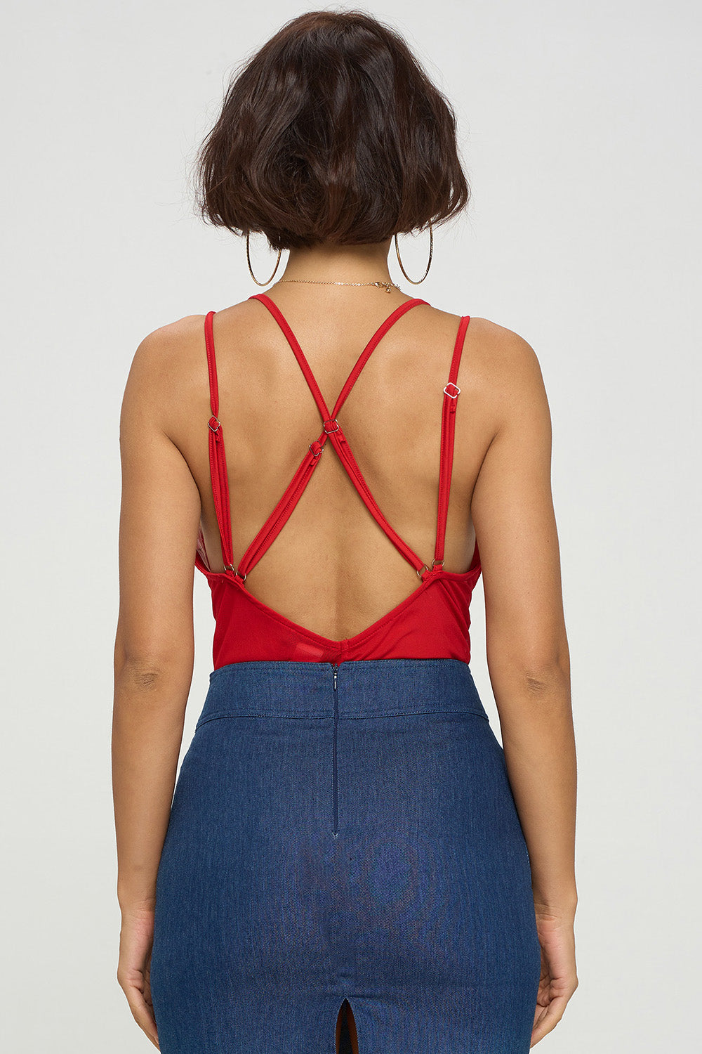 CRISS CROSS BACK STRAP LACE MESH BODYSUIT