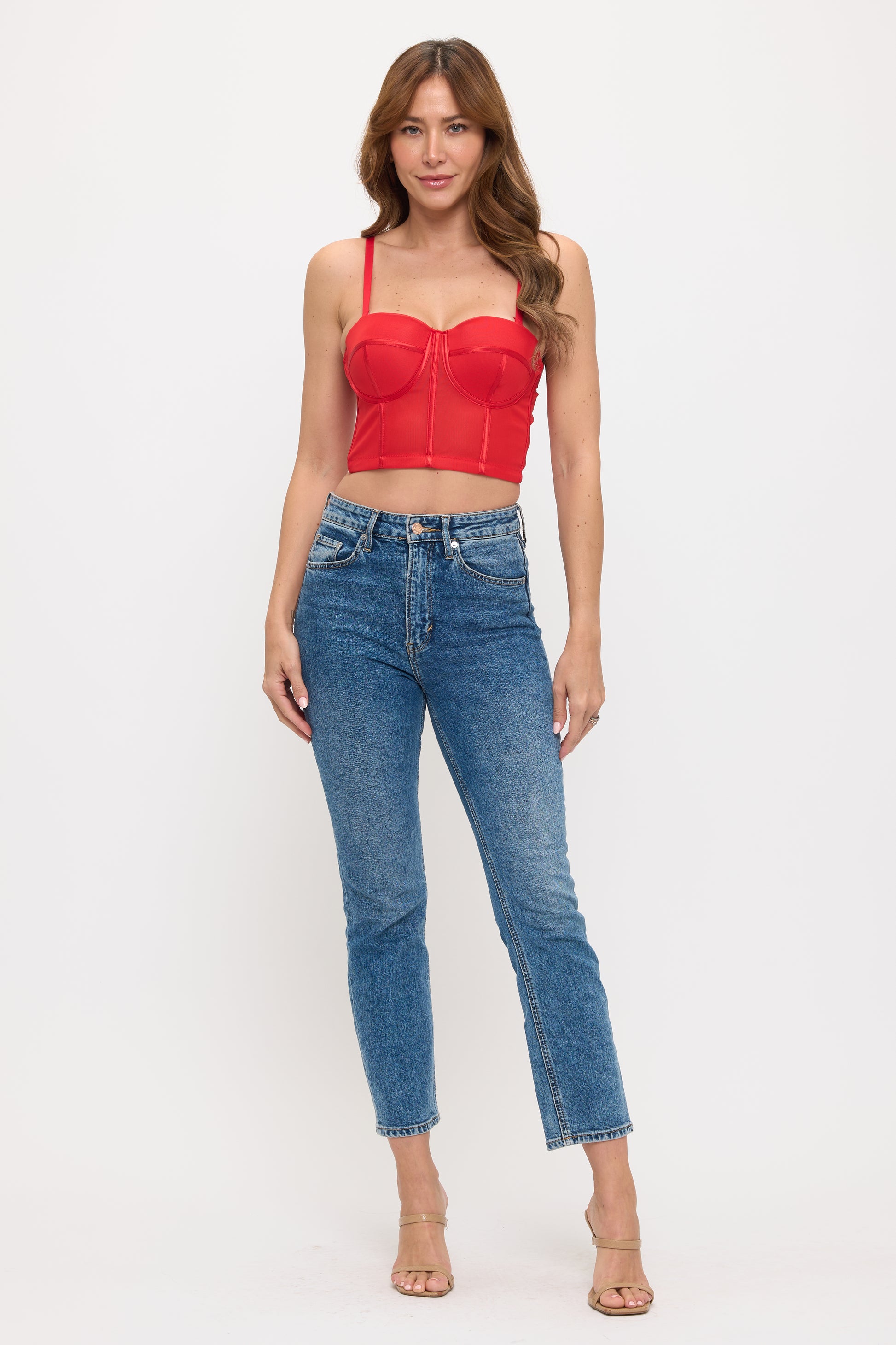 Sheer Mesh Longline Bustier Top