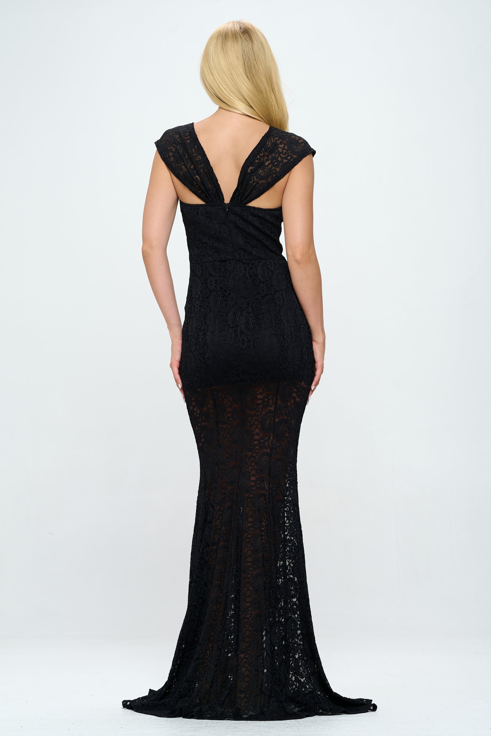 FLORAL LACE DETAIL CAP SLEEVE MERMAID MAXI DRESS